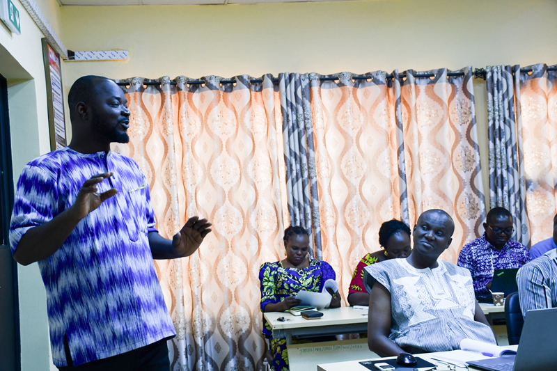 À sa suite, monsieur Emmanuel SAGNON, concepteur de la charte graphique du projet, a présenté les éléments clés de l’identité visuelle. Il a expliqué le logo et ses conditions d’utilisation, les couleurs utilisées et leur signification, ainsi que les polices recommandées. Cette séquence visait à assurer le respect des normes visuelles, l’harmonisation des supports de communication et la cohérence de l’image du projet.